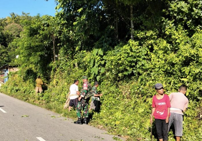 Kemitraan TNI dan Warga Desa Weepatola: Bersih-Bersih Jalan untuk Lingkungan Sehat