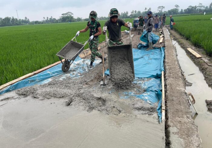 Kegiatan ini menjadi bagian dari upaya percepatan pembangunan infrastruktur desa yang diharapkan dapat memperlancar akses masyarakat menuju daerah pertanian dan pemukiman. Dengan koordinasi yang solid, setiap personel TMMD bekerja sesuai fungsi masing-masing untuk memastikan kekuatan dan ketepatan struktur besi sebelum pengecoran dimulai.
