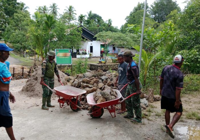 KENDARI – Proyek pembangunan fasilitas sanitasi melalui program TNI Manunggal Membangun Desa (TMMD) ke-127 menunjukkan kemajuan yang signifikan di Kelurahan Sambuli, pada Sabtu (28/2). Satgas yang berasal dari Kodim 1417/Kendari kini tengah fokus pada proses pengecoran slop atas, yang bertujuan untuk memperkuat struktur bangunan Mandi, Cuci, Kakus (MCK) agar lebih kokoh dan tahan lama. Proses pengecoran ini dilakukan dengan cermat untuk memastikan kualitas konstruksi yang optimal, sehingga fasilitas tersebut dapat digunakan secara aman oleh masyarakat setempat. Pembangunan MCK ini menjadi salah satu sasaran fisik prioritas dalam upaya meningkatkan standar kebersihan dan kesehatan lingkungan bagi warga. Diharapkan, setelah seluruh tahap pembangunan selesai, fasilitas MCK ini dapat memberikan dampak positif yang signifikan terhadap kualitas hidup masyarakat di wilayah Sambuli.
