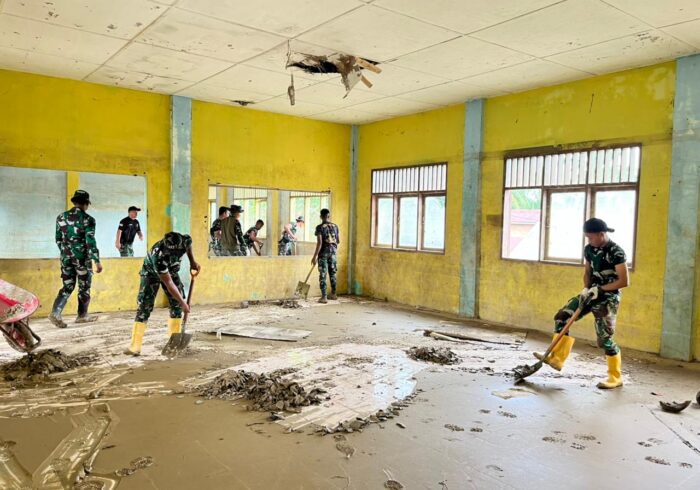 Kegiatan pembersihan difokuskan pada ruang-ruang kelas yang masih dipenuhi lumpur, kursi dan meja belajar yang kotor akibat endapan banjir, serta halaman sekolah yang tertutup sisa material lumpur dan sampah. Dengan menggunakan peralatan seadanya seperti sekop, Arco, dan cangkul, para prajurit bekerja secara gotong royong membersihkan setiap sudut sekolah agar kembali bersih dan layak digunakan.