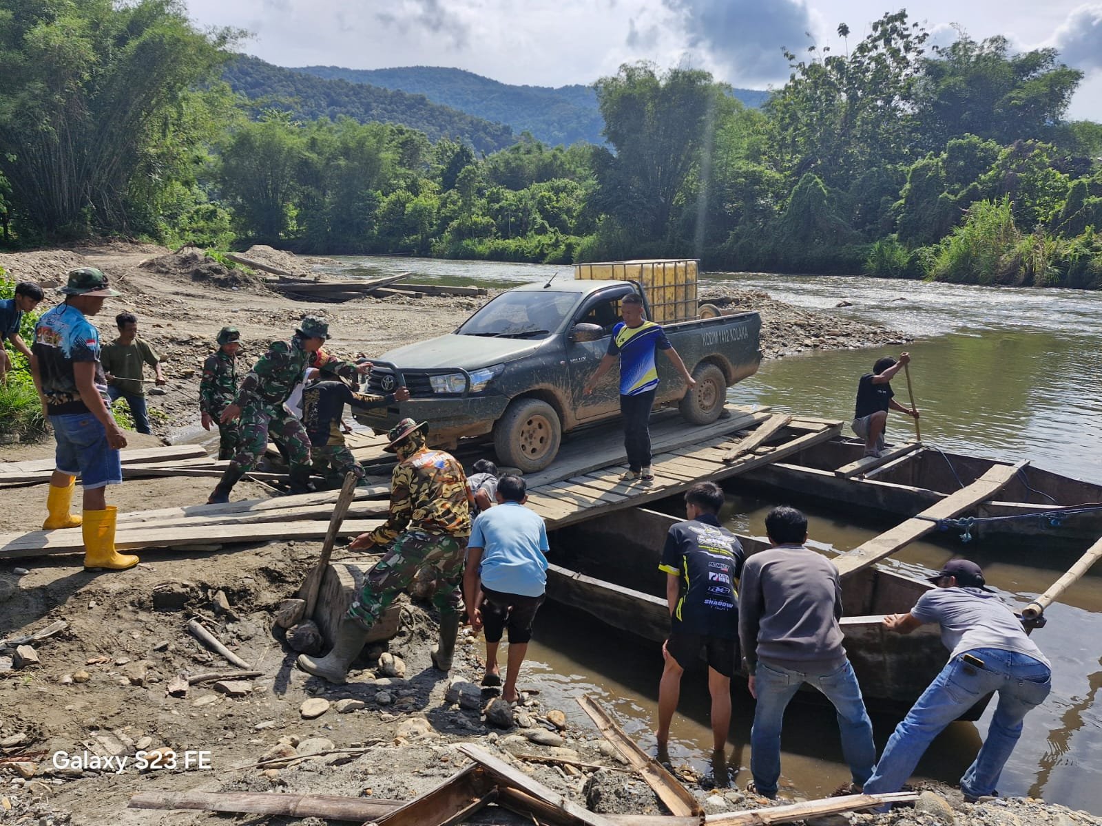 Meski penuh risiko, semangat mereka tak surut. Dengan peralatan seadanya, beberapa prajurit membantu warga membawa material dan perlengkapan kerja agar kegiatan pembangunan tetap dapat berjalan sesuai rencana.