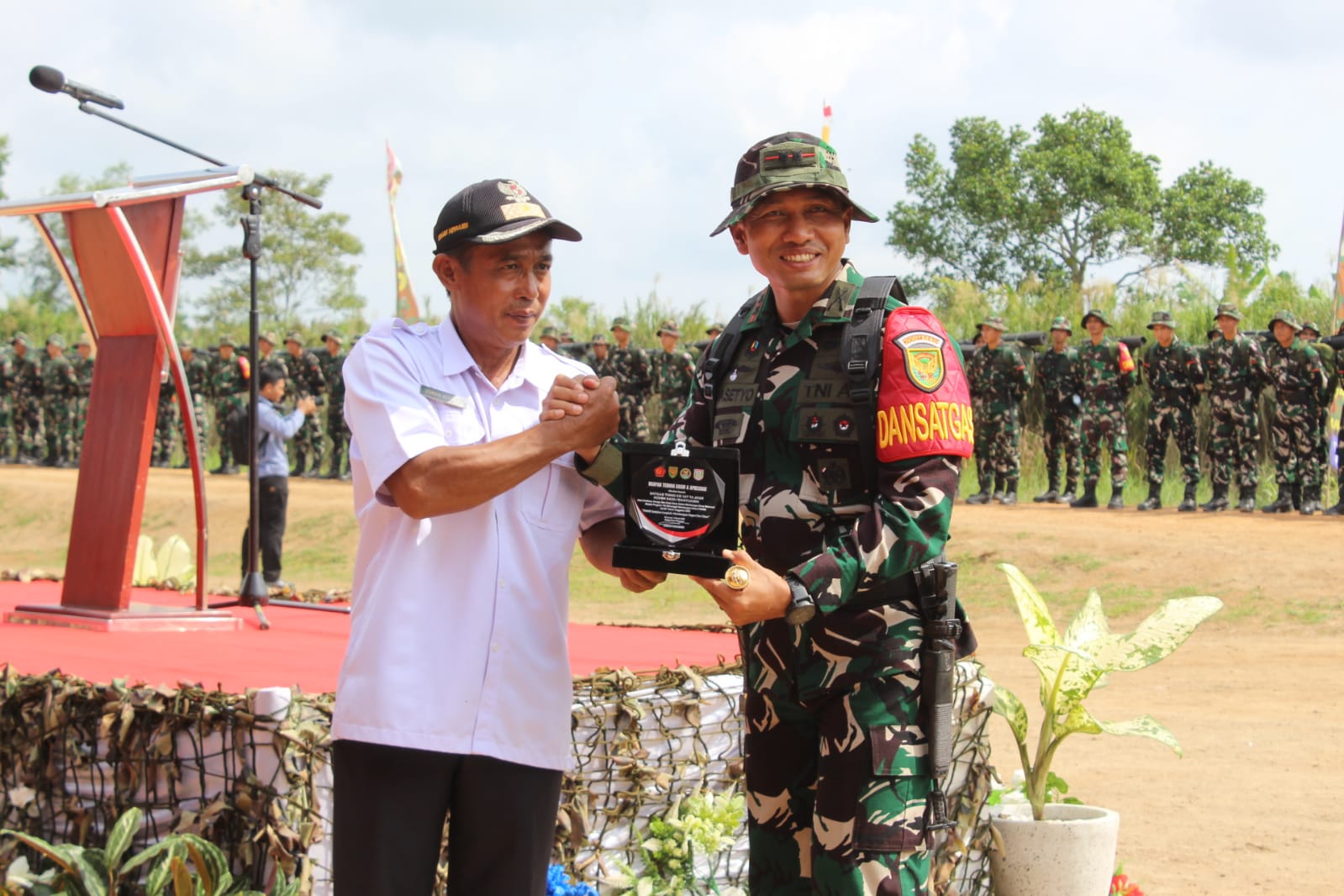Banyuasin, 11 Maret 2026 – Warga Desa Wonosari mengekspresikan rasa syukur dan penghargaan mereka atas keberhasilan pelaksanaan program TNI Manunggal Membangun Desa (TMMD) ke-127 yang dilaksanakan oleh Kodim 0430/Banyuasin. Sebagai bentuk apresiasi, Kepala Desa Wonosari, Bapak Usman Noviardi, menyerahkan plakat penghargaan kepada Dansatgas TMMD.