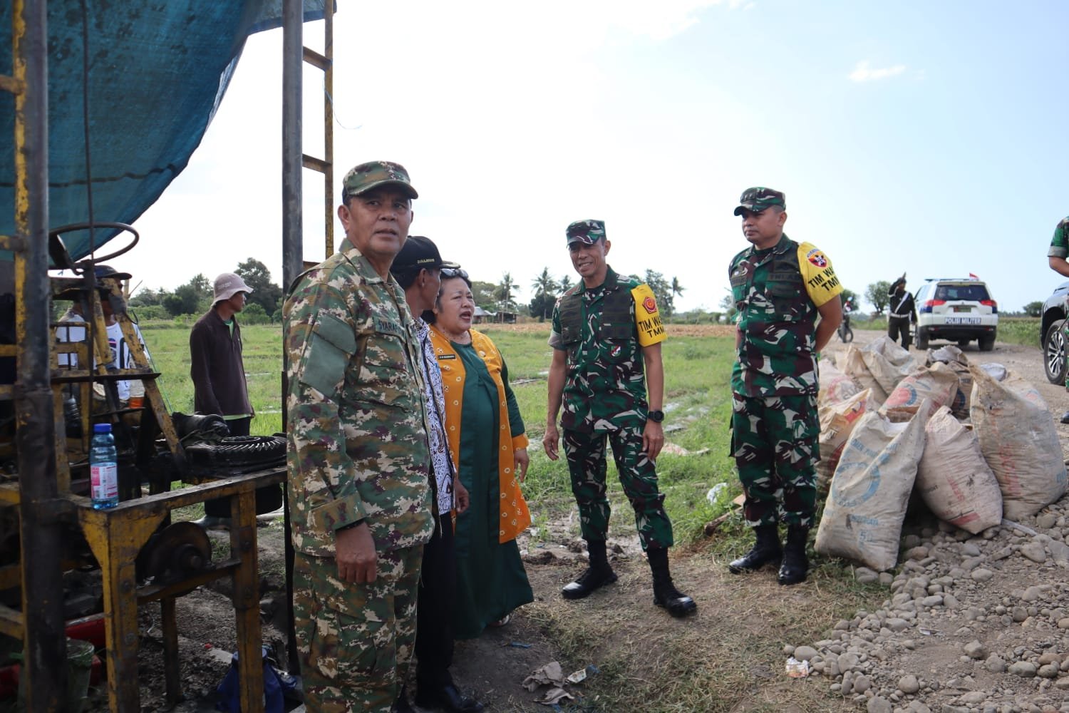 Kunjungan ini dipimpin langsung oleh Komandan Satgas TMMD Letkol Kav Basofi Cahyowibowo, S.T. dan diwarnai sambutan hangat masyarakat melalui pertunjukan seni budaya lokal. Rombongan kemudian bergerak meninjau pembangunan Jembatan Limpas, perbaikan fasilitas umum, pembuatan sumur bor, hingga peningkatan sarana ekonomi desa.