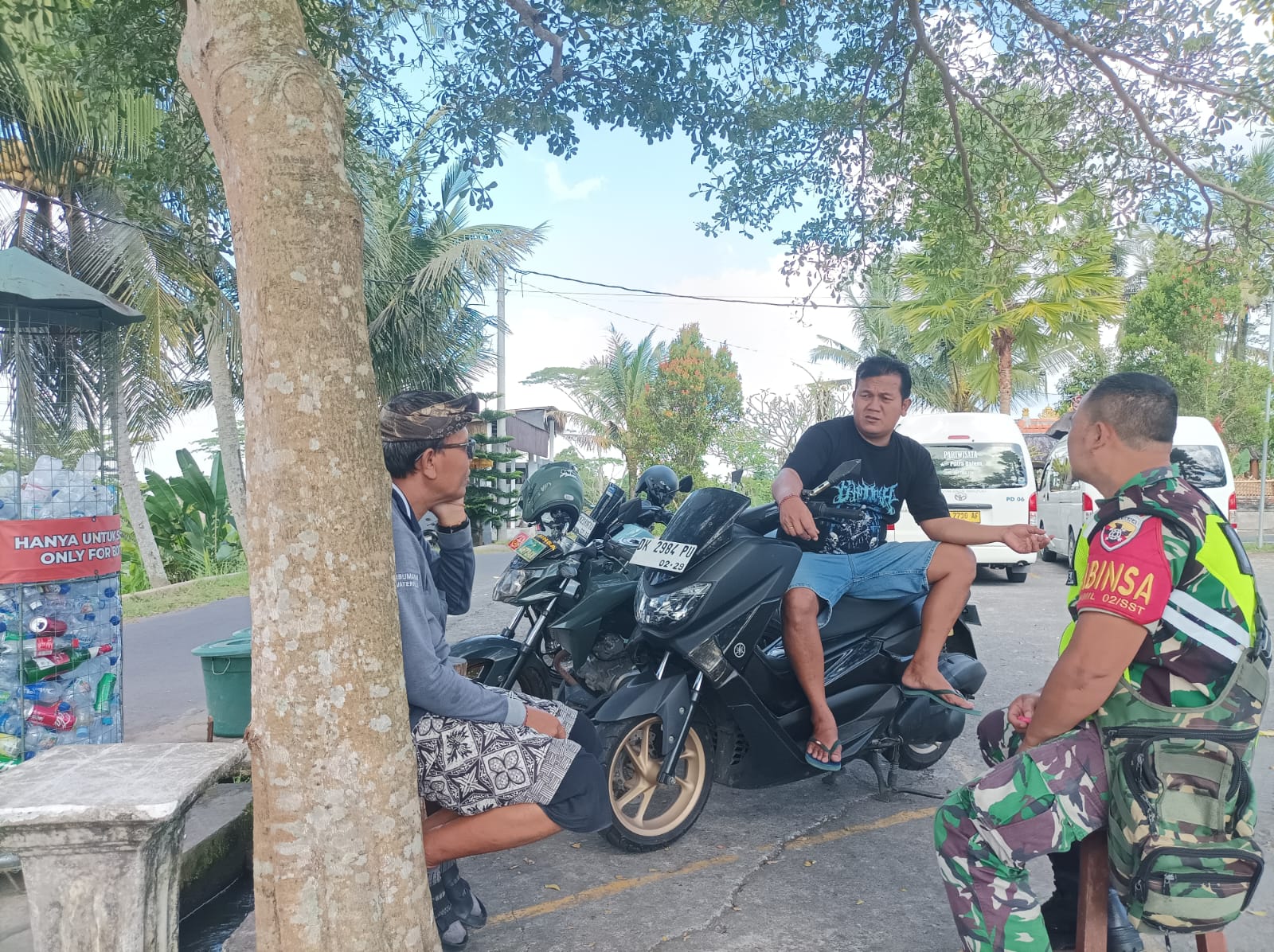 Kegiatan Komsos ini berlangsung di area parkiran Obyek Wisata Tibumana, di mana Babinsa berinteraksi dengan warga yang bertugas menjaga keamanan di lokasi tersebut. Dalam kesempatan itu, ia memberikan imbauan dan sosialisasi mengenai pentingnya menjaga situasi keamanan dan ketertiban masyarakat (kamtibmas), terutama di tempat yang ramai dikunjungi wisatawan.