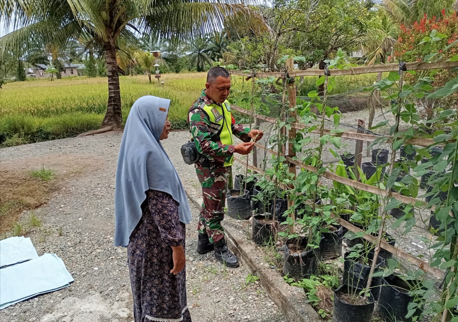 Babinsa menambahkan bahwa dengan perawatan yang baik dan intensif, tanaman kacang panjang akan tumbuh subur serta berpotensi menghasilkan panen melimpah.