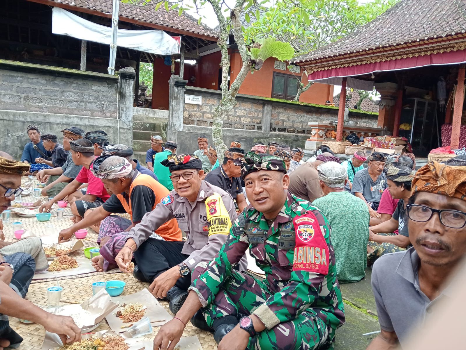 Bangli – Dalam upaya menjaga hubungan harmonis dan mendukung pelaksanaan kegiatan keagamaan, Babinsa Desa Bunutin, Sertu Komang Yetrawan bersama Bhabinkamtibmas setempat melaksanakan Komunikasi Sosial (Komsos) serta ikut ngayah di Pura Dalem Br. Guliang Kawan, Desa Bunutin, Kecamatan Bangli, pada Selasa (13/1/26). Kegiatan ini diadakan untuk mempererat sinergi antara aparat kewilayahan dan masyarakat, serta memastikan keamanan dalam pelaksanaan acara adat.