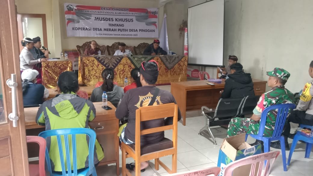 Babinsa Desa Pingan, Serka Dewa Nyoman Alit Adnyana, menyampaikan bahwa kegiatan Musdes Khusus ini merupakan langkah penting dalam membangun kemandirian ekonomi desa melalui Koperasi Merah Putih, serta memperkuat sinergi lintas sektor dalam upaya percepatan penanganan stunting, “Kami dari Koramil 1626-04/Kintamani siap mendukung penuh setiap kegiatan pemberdayaan masyarakat dan upaya peningkatan kesejahteraan warga desa,” ujarnya.