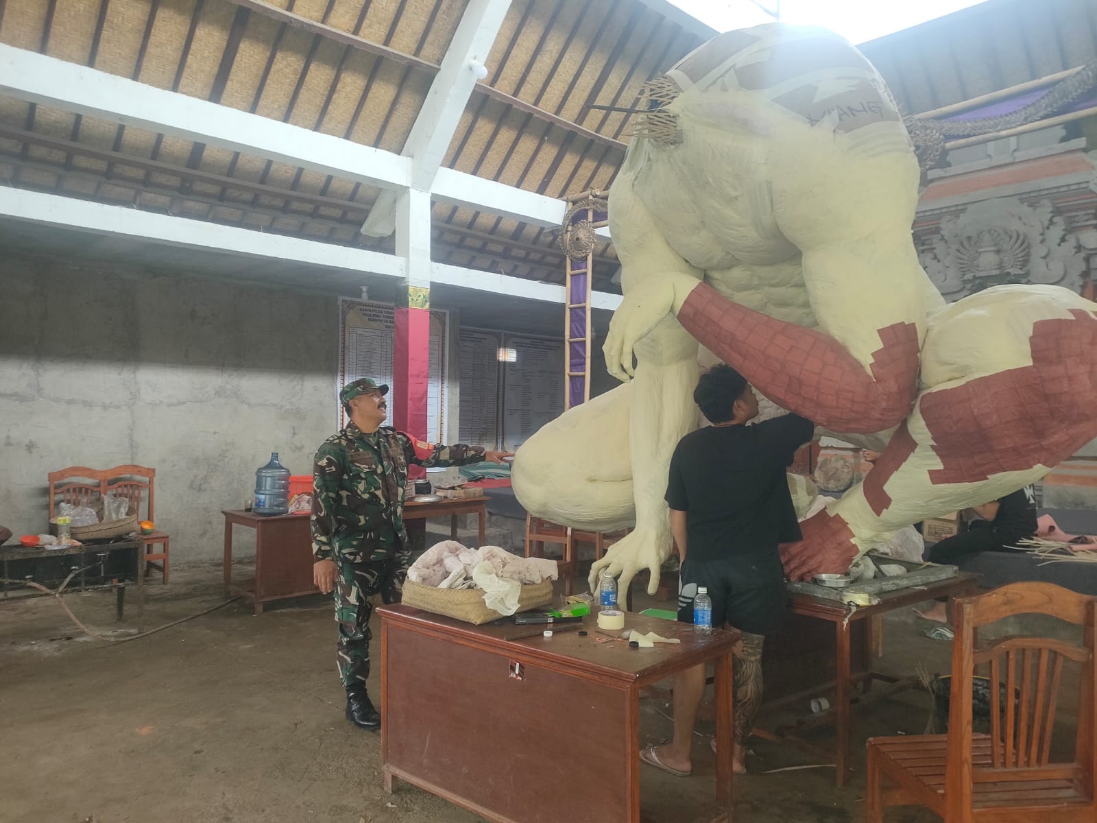 Bangli – Dalam rangka menyambut Hari Raya Nyepi yang jatuh pada Tahun Baru Saka 1948, Babinsa Desa Tiga, Pelda I Nengah Wendra, telah melaksanakan kegiatan Komunikasi Sosial (Komsos) sekaligus memantau proses pembuatan ogoh-ogoh oleh Sekehe Truna Truni di Banjar Temaga.