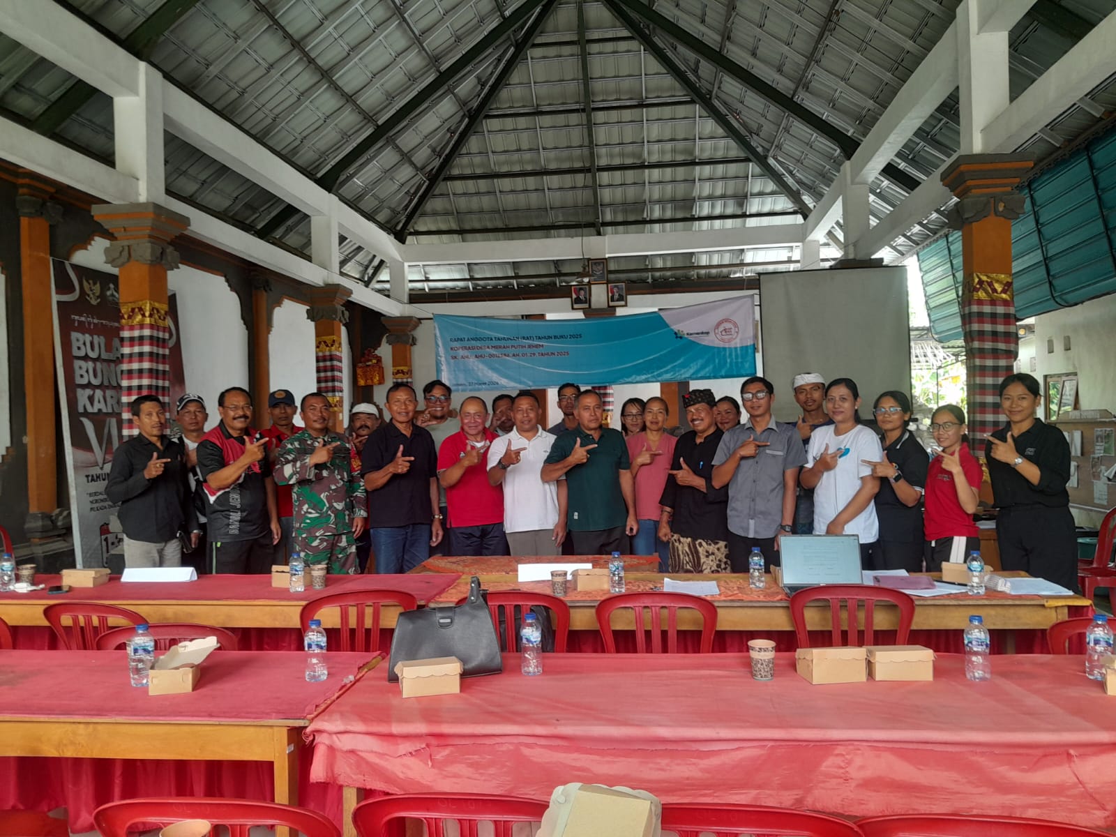 RAT tersebut melibatkan pengurus koperasi, anggota, serta instansi terkait lainnya, dengan agenda utama yang mencakup penyampaian laporan pertanggungjawaban dari pengurus dan pengawas koperasi, serta evaluasi kinerja sepanjang tahun buku 2025. Acara berjalan lancar dengan urutan kegiatan yang terdiri dari pembukaan, menyanyikan lagu Indonesia Raya, doa, sambutan, laporan pertanggungjawaban, sesi tanya jawab, hingga penandatanganan dokumen dan penutup yang ditandai dengan foto bersama.