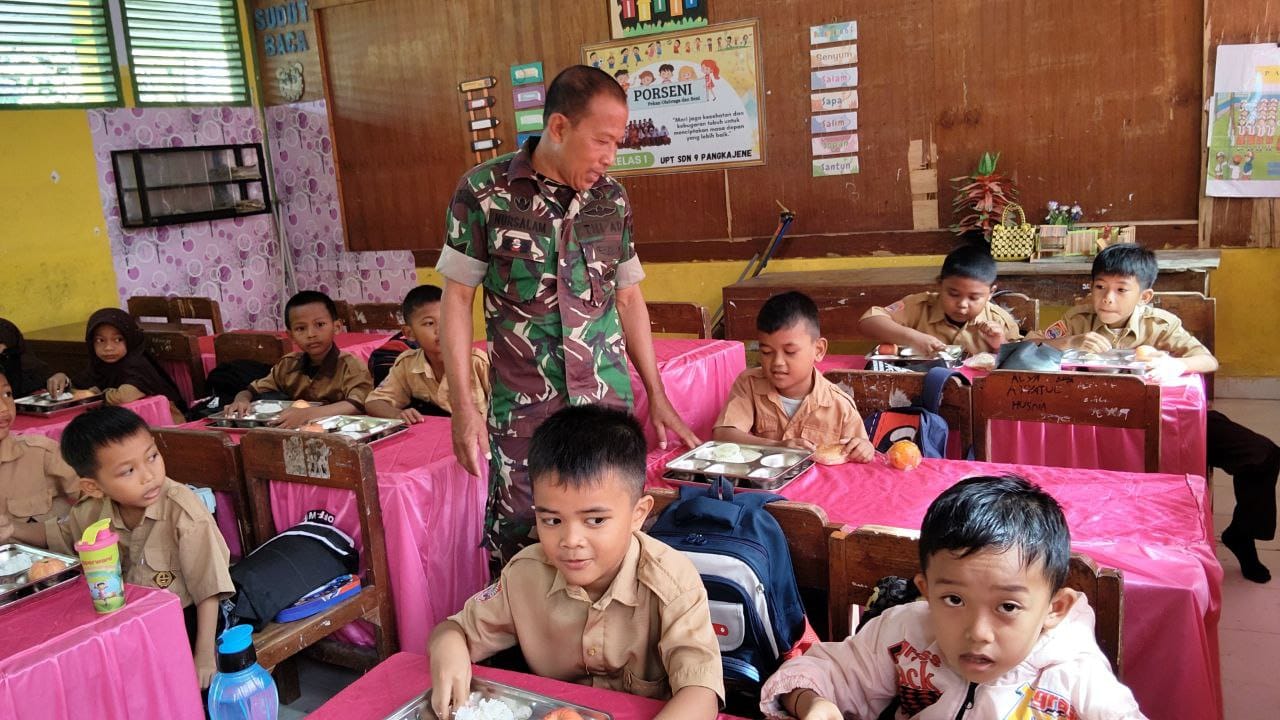 Selama kegiatan, para Babinsa tidak hanya mengawasi distribusi makanan, tetapi juga terlibat dalam dialog dengan guru dan orang tua siswa untuk meningkatkan kesadaran akan pentingnya asupan gizi yang seimbang bagi perkembangan anak.