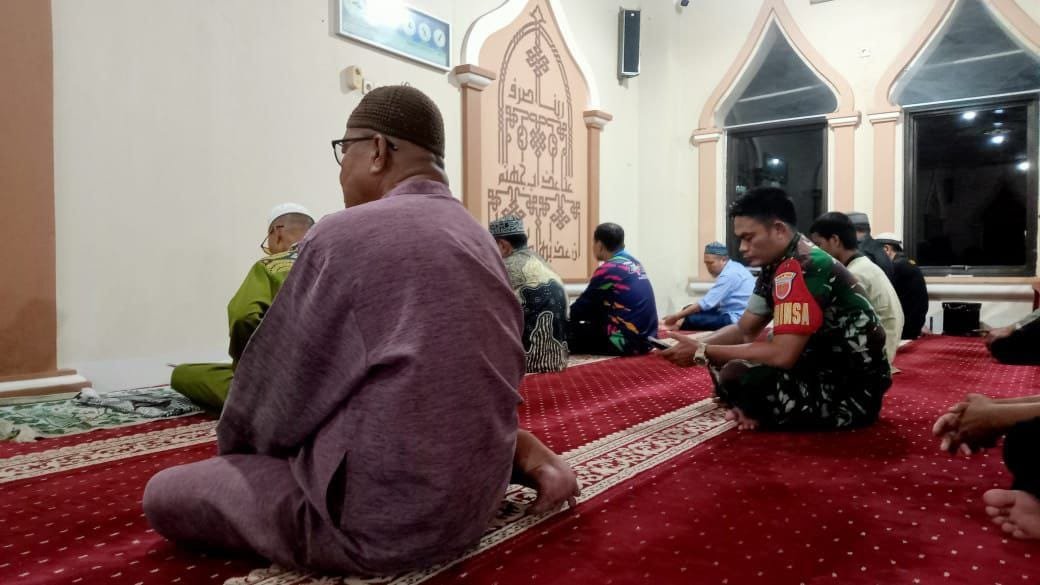 Usai shalat subuh berjamaah, Babinsa berinteraksi langsung dengan warga, mendengarkan aspirasi, serta memberikan motivasi agar masyarakat tetap menjaga persatuan dan keamanan lingkungan.