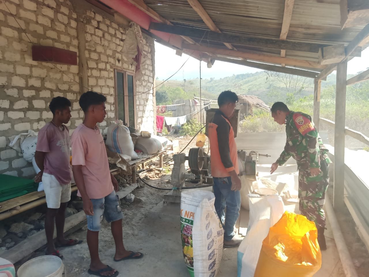 SUMBA TENGAH – Babinsa Koramil 03/Katikutana Kodim 1613/Sumba Barat, Sertu Sukarman melaksanakan komunikasi sosial (komsos) bersama seorang pengusaha penggilingan padi di Desa Maradesa, Kecamatan Umbu Ratu Nggay Tengah, Kabupaten Sumba Tengah, Minggu (03/8/2025).