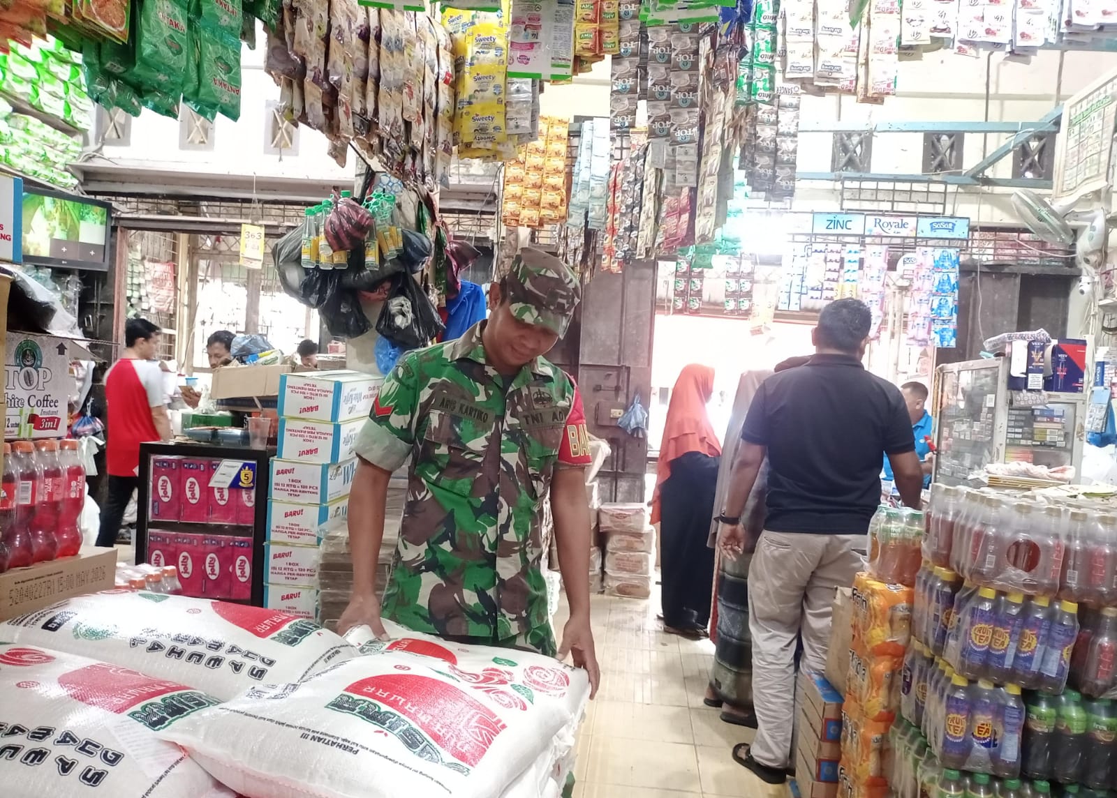 ACEH JAYA – Babinsa Koramil 01/Jaya Kodim 0114/Aceh Jaya melaksanakan kegiatan pengecekan harga bahan pokok di pasar wilayah Kecamatan Jaya, Kabupaten Aceh Jaya, Rabu (08/04/2026). Kegiatan ini dilakukan guna memantau perkembangan harga sembako sekaligus memastikan ketersediaan bahan kebutuhan masyarakat tetap stabil di pasaran.