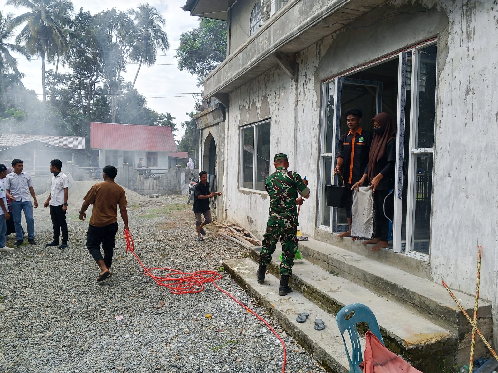 ACEH JAYA – Semangat kebersamaan terlihat dalam kegiatan gotong royong yang dilaksanakan di Masjid Nurul Iman, Desa Padang, Kecamatan Setia Bakti, Kabupaten Aceh Jaya, Senin (06/04/2026). Kegiatan tersebut melibatkan Babinsa Koramil 03/Setia Bakti Kodim 0114/Aceh Jaya, Serka Parwoto, bersama para siswa, siswi, dan guru SMKN 1 Setia Bakti.