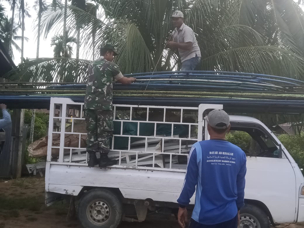 ACEH JAYA Dalam semangat kebersamaan dan kepedulian sosial, Koptu Tatang, Babinsa Koramil 05/Panga, Kodim 0114/Aceh Jaya, hari ini turut serta membantu warga Desa Alue Abed, Kecamatan Panga, dalam mempersiapkan acara kenduri khitanan anak dari Bapak Ismailis (40). Keterlibatan Koptu Tatang terlihat dari bantuannya mengangkut berbagai perlengkapan yang dibutuhkan untuk suksesnya acara syukuran tersebut, Senin (11/08).