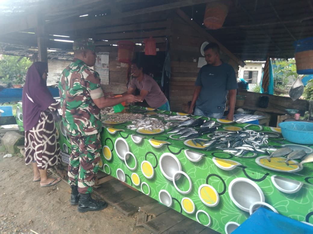 ACEH JAYA – Dalam upaya memastikan ketersediaan dan kestabilan harga kebutuhan pokok masyarakat, Babinsa Koramil 05/Panga, Serda Astrada Beruh, melaksanakan kegiatan pemantauan harga ikan di salah satu lapak pedagang di Desa Kuta Tuha, Kecamatan Panga, pada Sabtu (30/08/25).