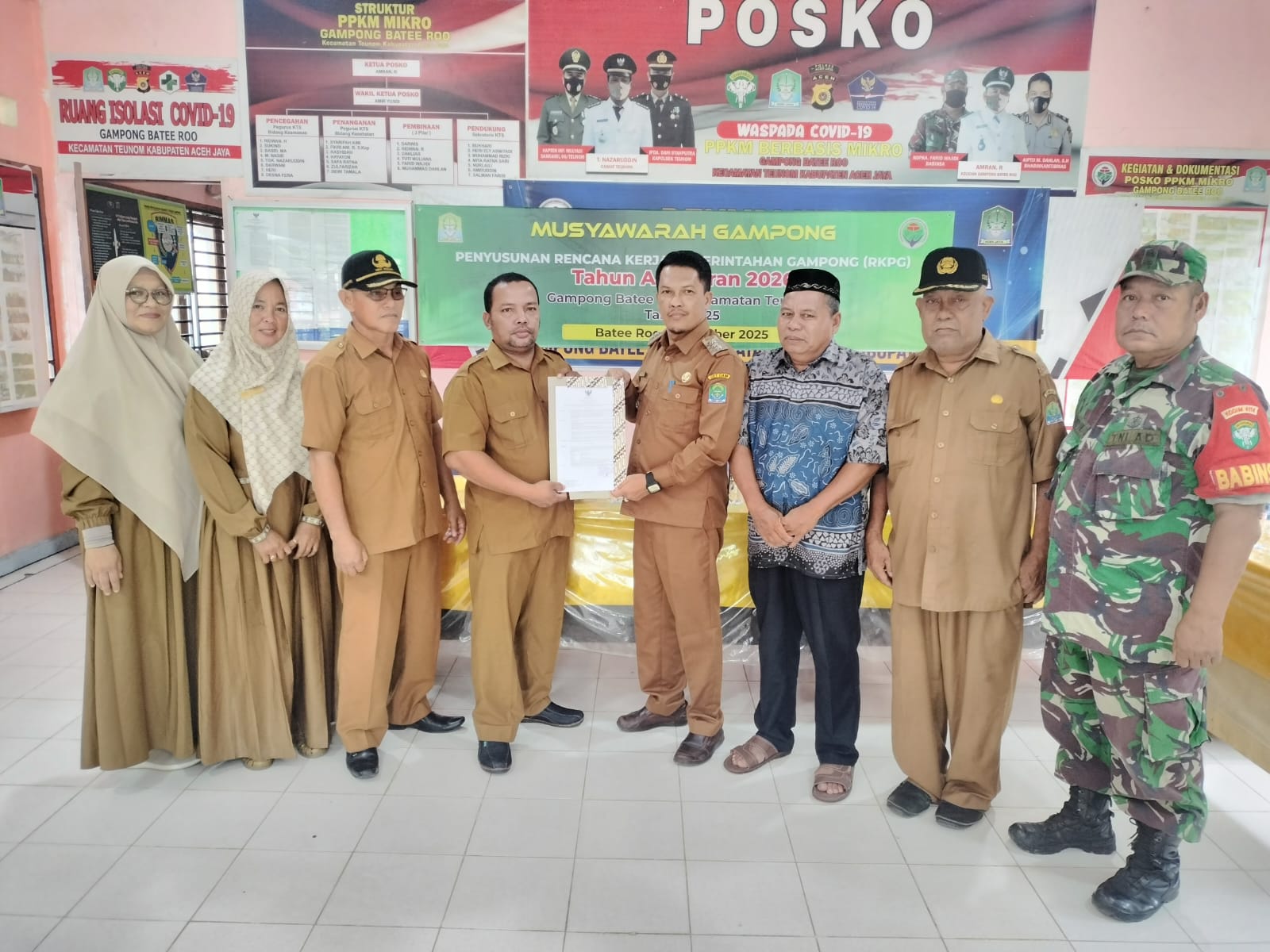 Kegiatan tersebut dihadiri sekitar 30 orang, di antaranya Camat Teunom T. Nazaruddin, S.E., Kasi Pembangunan Ibu Fatmalia, Kasi Pemerintahan, Keuchik lama Bapak Amran R., Tuha Peut Desa Batee Roo, aparatur desa beserta anggota, serta Bidan Desa Batee Roo.