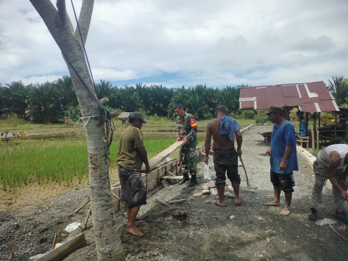 ACEH BARAT – Sertu Agustino, Babinsa Koramil 07/Johan Pahlawan Kodim 0105/Aceh Barat, melaksanakan kegiatan gotong royong membuat talud jalan, Senin (13/10/2025). Kegiatan ini merupakan bentuk partisipasi Babinsa dalam upaya meningkatkan infrastruktur dan kondisi lingkungan desa.