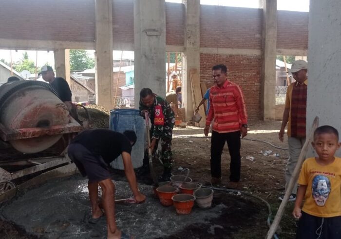 ACEH BARAT — Babinsa Koramil 08 Arongan Lambalek Kodim 0105/Aceh Barat, Sertu Agus S, terjun langsung membantu warga memasang papan cetak pondasi rumah warga di Desa Ujung Simpang, Kecamatan Arongan Lambalek, Kabupaten Aceh Barat, Kamis (20/02/2025).