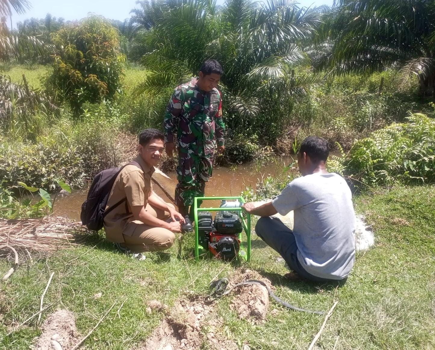 Aceh Barat — Babinsa Koramil 08 Arongan Lambalek Kodim 0105/Aceh Barat, (Koptu) Afrizal, mendampingi warga mengecek mesin air untuk di alirkan ke sawah di Desa Ujung Simpang Kec Arongan Lambalek Kab Aceh Barat, Selasa (12/11/2024).
