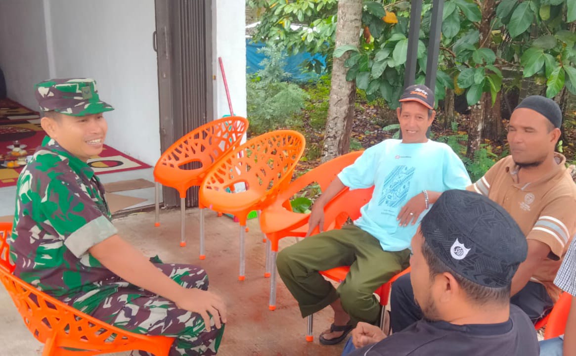 ACEH BARAT – Babinsa Koramil 08/Arongan Lambalek Kodim 0105/Abar, Serda Musliadi, melaksanakan komunikasi sosial (komsos) bersama warga di Desa Drien Rampak, Kecamatan Arongan Lambalek, Kabupaten Aceh Barat, pada Rabu (16/07/2025).