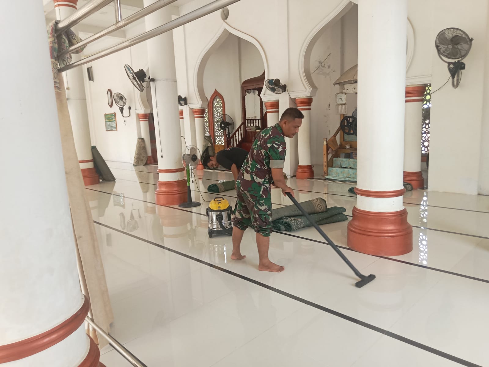 Kegiatan gotong royong tersebut dilakukan sebagai upaya menjaga kebersihan rumah ibadah sekaligus meningkatkan kenyamanan warga saat melaksanakan kegiatan ibadah. Selain membersihkan bagian dalam masjid, masyarakat bersama Babinsa juga melakukan pembersihan halaman dan area sekitar masjid.