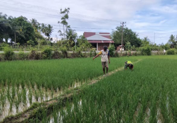 ACEH BARAT — Dalam upaya mendukung ketahanan pangan dan meningkatkan hasil pertanian masyarakat, Kopral Dua (Kopda) Hendrawan, Babinsa Koramil 09/Samatiga, melaksanakan kegiatan pengecekan tanaman padi bersama Kelompok Tani (Pok Tani) di wilayah binaannya, Jumat (8/8/2025).