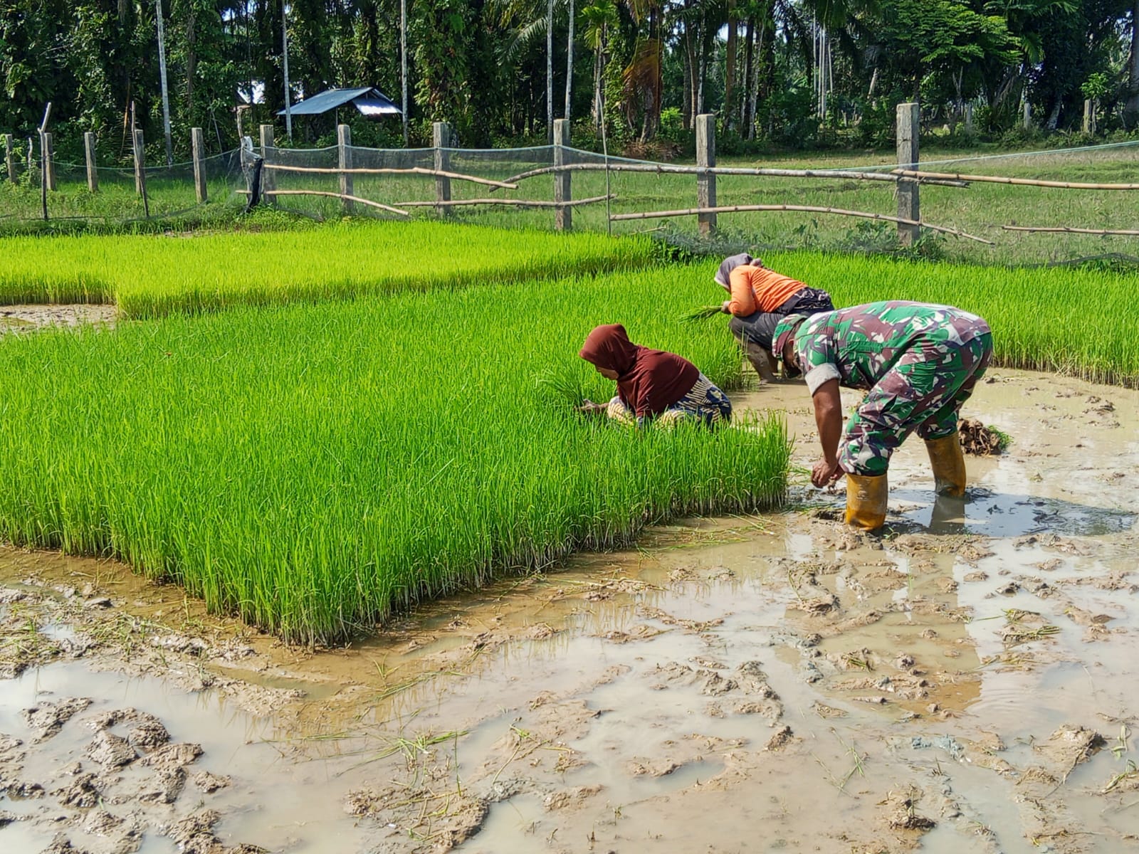 Dalam suasana penuh kebersamaan dan semangat gotong royong, Serka Sulaiman bersama para petani bekerja bahu-membahu mencabut bibit di sawah milik warga. Tak hanya memberikan tenaga, kehadiran Babinsa juga menjadi penyemangat bagi masyarakat agar tetap produktif dan optimis menyongsong musim tanam.
