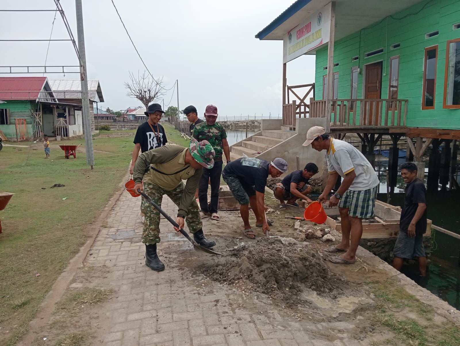 Konawe – Anggota Babinsa dari Koramil 1417-07/Sampara, Kodim 1417/Kendari, menunjukkan komitmennya terhadap kebersihan lingkungan dengan terlibat dalam pembangunan bak sampah bersama masyarakat setempat. Kegiatan ini berlangsung di Desa Muara Sampara, Kecamatan Kapoila, Kabupaten Konawe, pada hari Sabtu (7/2).