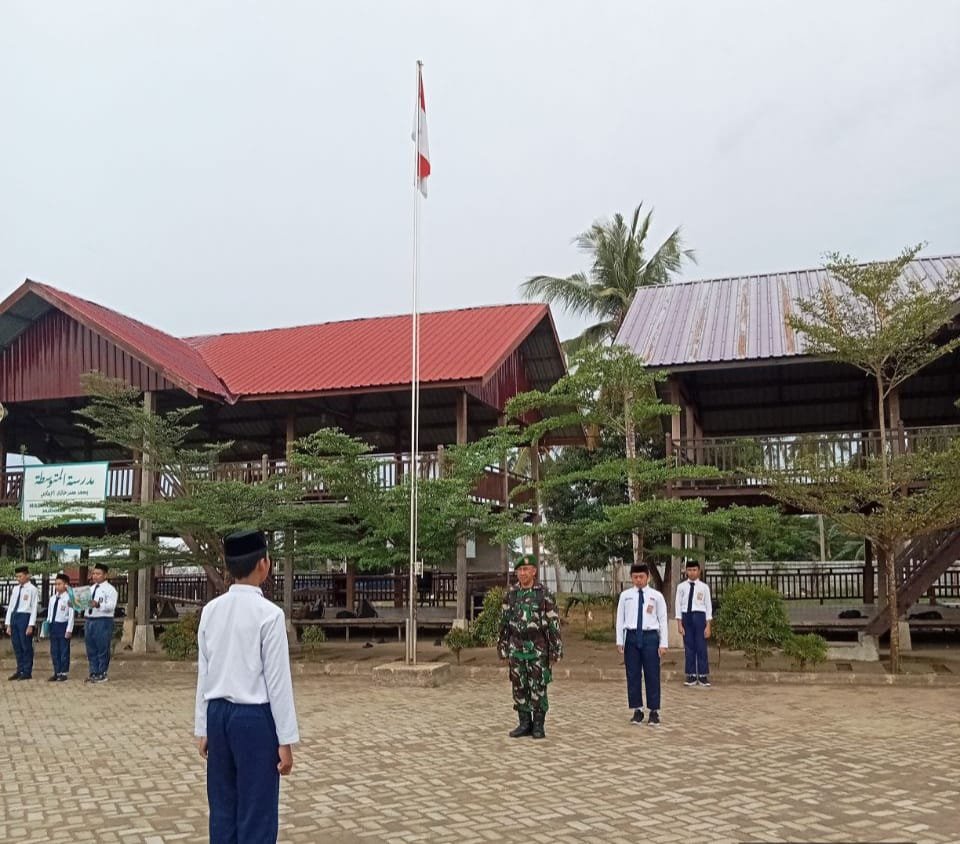 Mudir Pondok Pesantren Muammar Gandhi menyampaikan apresiasi dan terima kasih atas kehadiran serta bimbingan yang telah diberikan oleh Babinsa. “Kehadiran Bapak Babinsa sangat berharga. Selain menumbuhkan semangat nasionalisme melalui upacara, materi PBB yang diajarkan juga sangat bermanfaat untuk pembentukan karakter disiplin para santri kami,” tuturnya.
