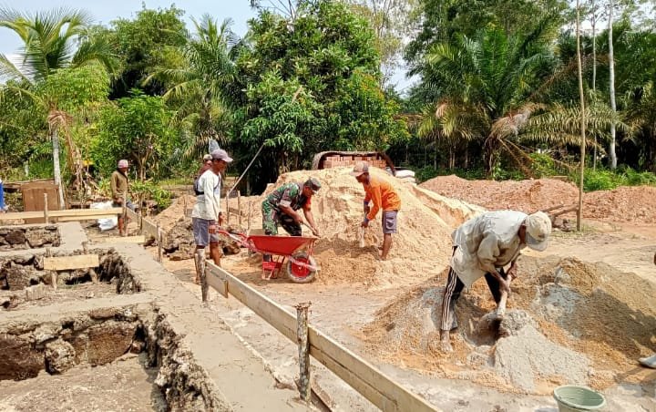 Dalam Kegiatan tersebut terlihat Babinsa turun tangan membantu warga binaannya yang sedang membangun rumah, dengan mengangkut tanah dan pasir maupun batu untuk menimbun ruang rumah yang masih kosong dan akan dilaksanakan pengecoran.