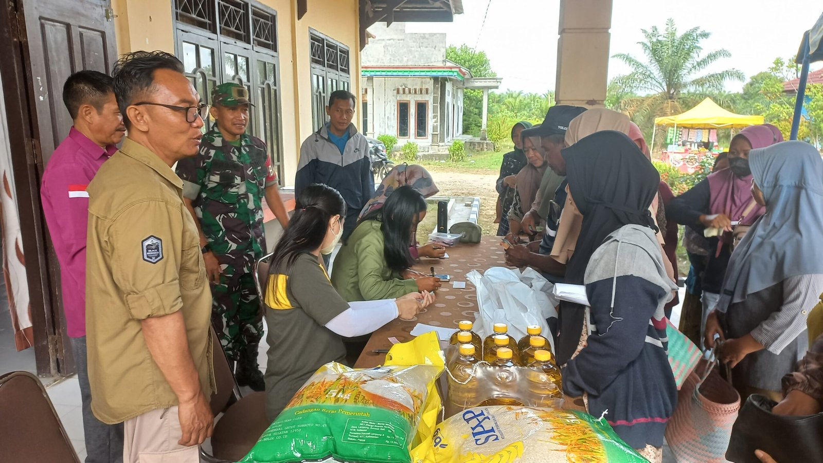 Sematu Jaya, Lamandau – Babinsa Koramil 1017-01/Bulik, Serka Heru Sasono, melaksanakan monitoring kegiatan Gerakan Pasar Murah yang digelar di Aula Kecamatan Sematu Jaya, Kabupaten Lamandau, Sabtu (13/09/25). Kegiatan ini diadakan guna membantu masyarakat memperoleh kebutuhan pokok dengan harga terjangkau.