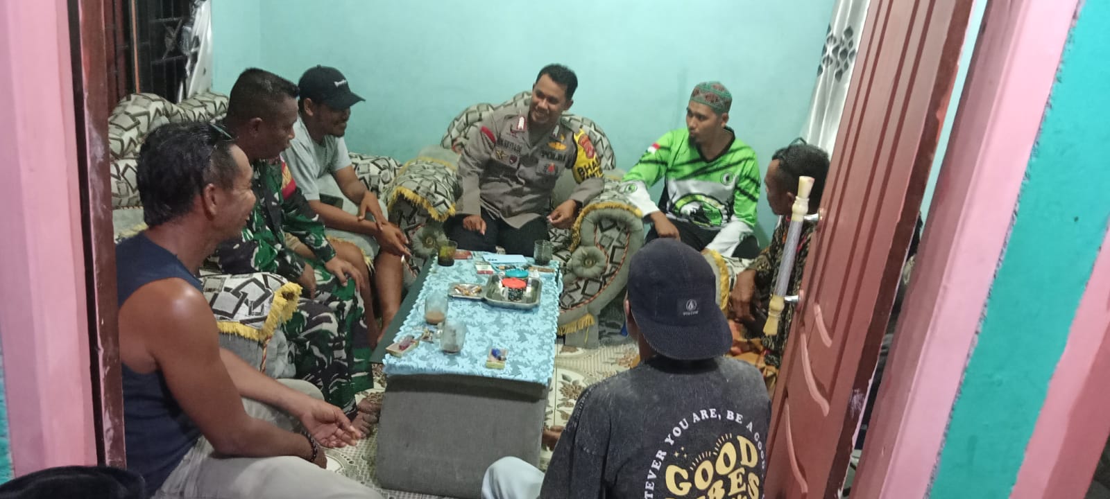 Sertu Abdullah Maulana juga memberikan himbauan kepada warga yang sedang berjaga malam, menekankan pentingnya rasa tanggung jawab dalam menjaga keamanan desa. Ia menjelaskan bahwa keamanan pada malam hari sangat bergantung pada kesiapsiagaan para petugas ronda.