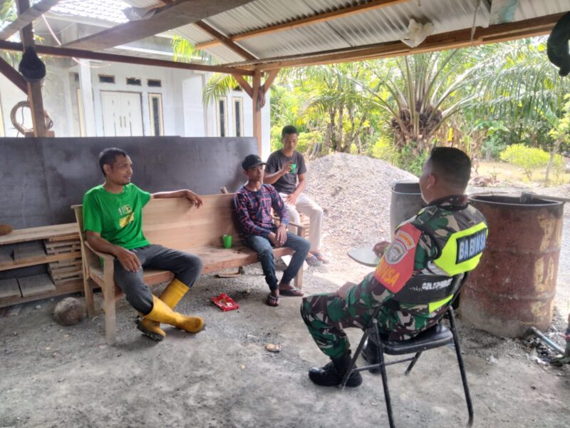 Nagan Raya – Babinsa Posramil Kuala Pesisir Kodim 0116/Nagan Raya, Kopka Subhaini, menjalin keakraban serta kebersamaan dengan warga melalui kegiatan Komunikasi Sosial (Komsos) di Desa Kuala Baro, Kecamatan Kuala Pesisir, Kabupaten Nagan Raya, Selasa (04/11/2025).
