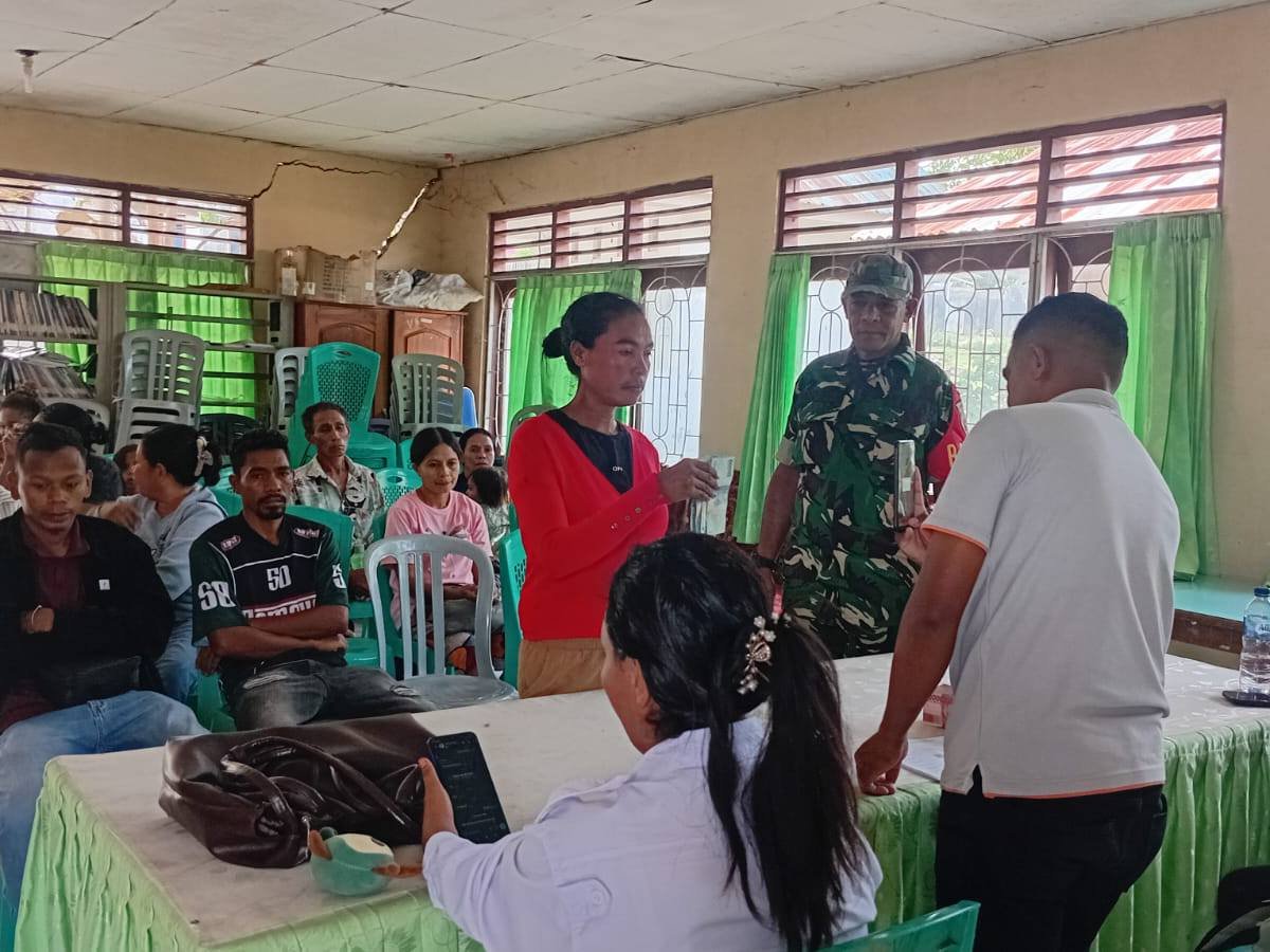 KODIM 1605/BELU, Babinsa Koramil 1605-01/Kota Atambua Serma Eurico Da Costa dan Serka Jose Alves mendampingi penyaluran BLT Kesra (Bantuan Langsung Tunai Sementara Kesejahteraan Rakyat) yang berlangsung di wilayah binaan masing-masing, pada Senin (24/11/2025).