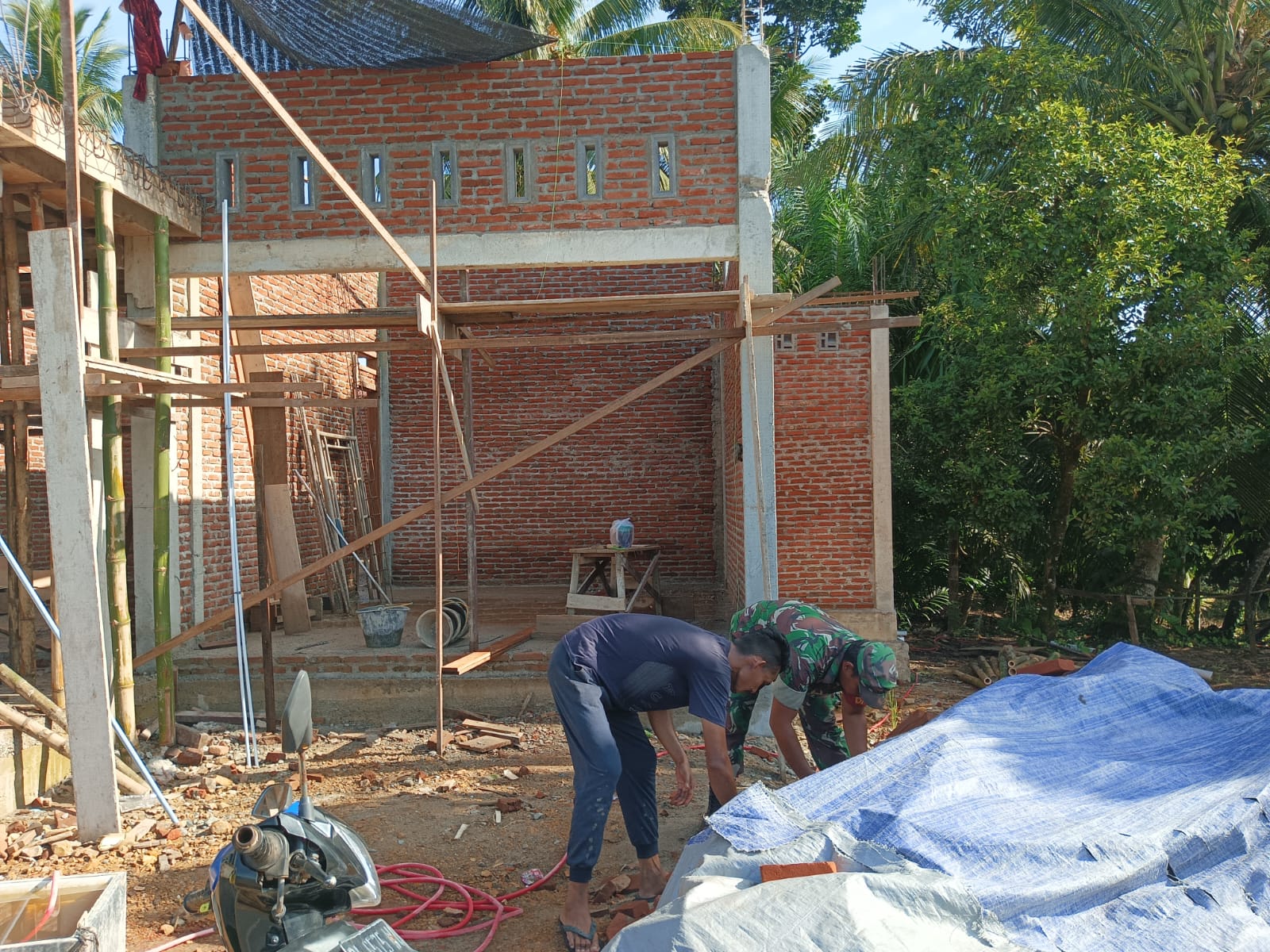Dalam kegiatan tersebut, Serda M. Ambri membantu Sdr. Khairul (39) mengangkat batu bata yang akan digunakan untuk pemasangan dinding rumah. Kehadiran Babinsa di tengah aktivitas pembangunan rumah warga ini menjadi bentuk nyata peran TNI dalam mendukung dan meringankan beban masyarakat di wilayah binaan.