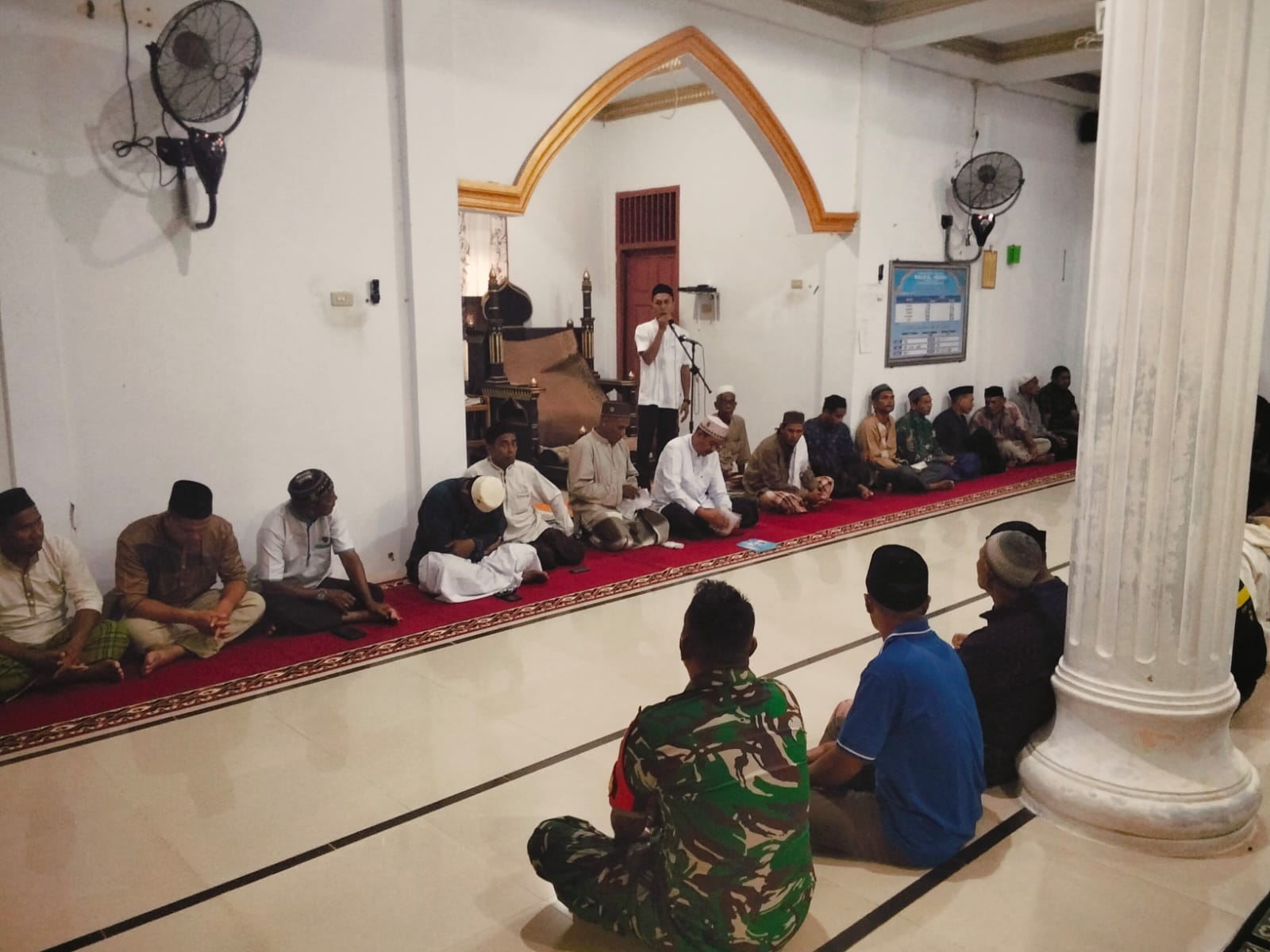 Aceh Jaya – Dalam rangka mengenang dan mendoakan para korban bencana alam tsunami Aceh yang ke-21 tahun, Babinsa Desa Kuta Tuha Koramil 05/Panga Kodim 0114/Aceh Jaya, Sersan Dua (Serda) Astrada Beruh, mewakili Komandan Koramil (Danramil) 05/Panga menghadiri acara kenduri tsunami dan doa bersama.