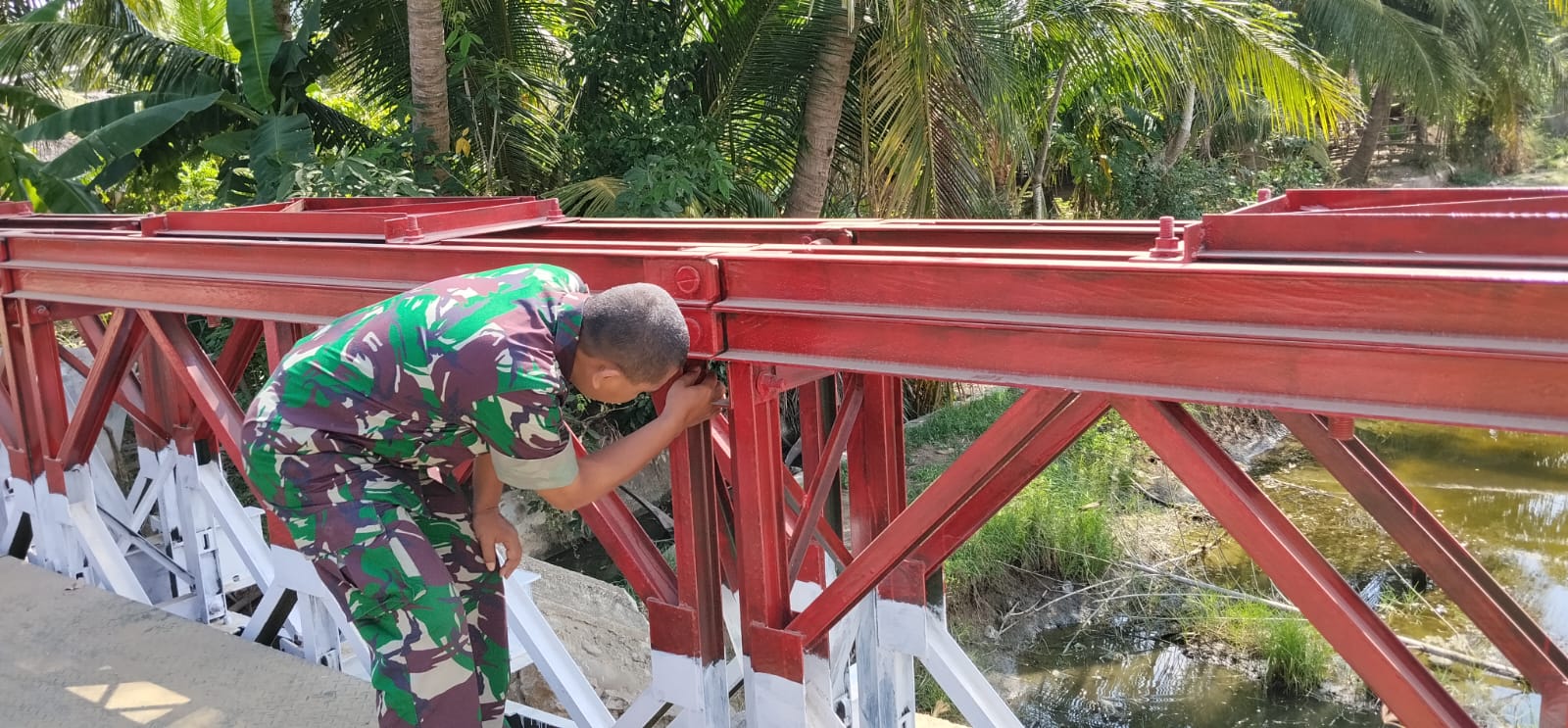 Babinsa Lakukan Pengecekan Rutin Jembatan Bailey, Jamin Keamanan Akses Warga Dewantara
