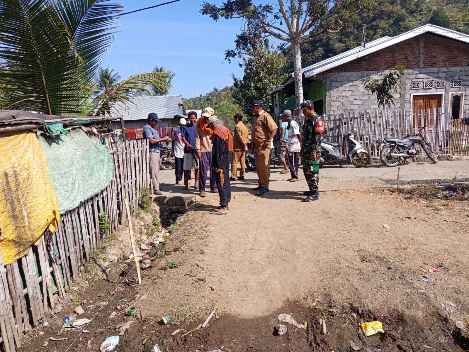 Dompu NTB– Peran Babinsa dalam mendukung pembangunan desa kembali terlihat melalui kegiatan yang dilakukan Babinsa Desa Mbawi, Koramil 1614-01/Dompu, Kopda Syarif Awaludin. Pada Senin (08/09/2025), ia bersama Kepala Desa dan perangkat desa melaksanakan komunikasi sosial (Komsos) sekaligus mendampingi masyarakat di Dusun Palikarawe dalam kegiatan pengukuran dan pembuatan gang untuk kebutuhan warga.