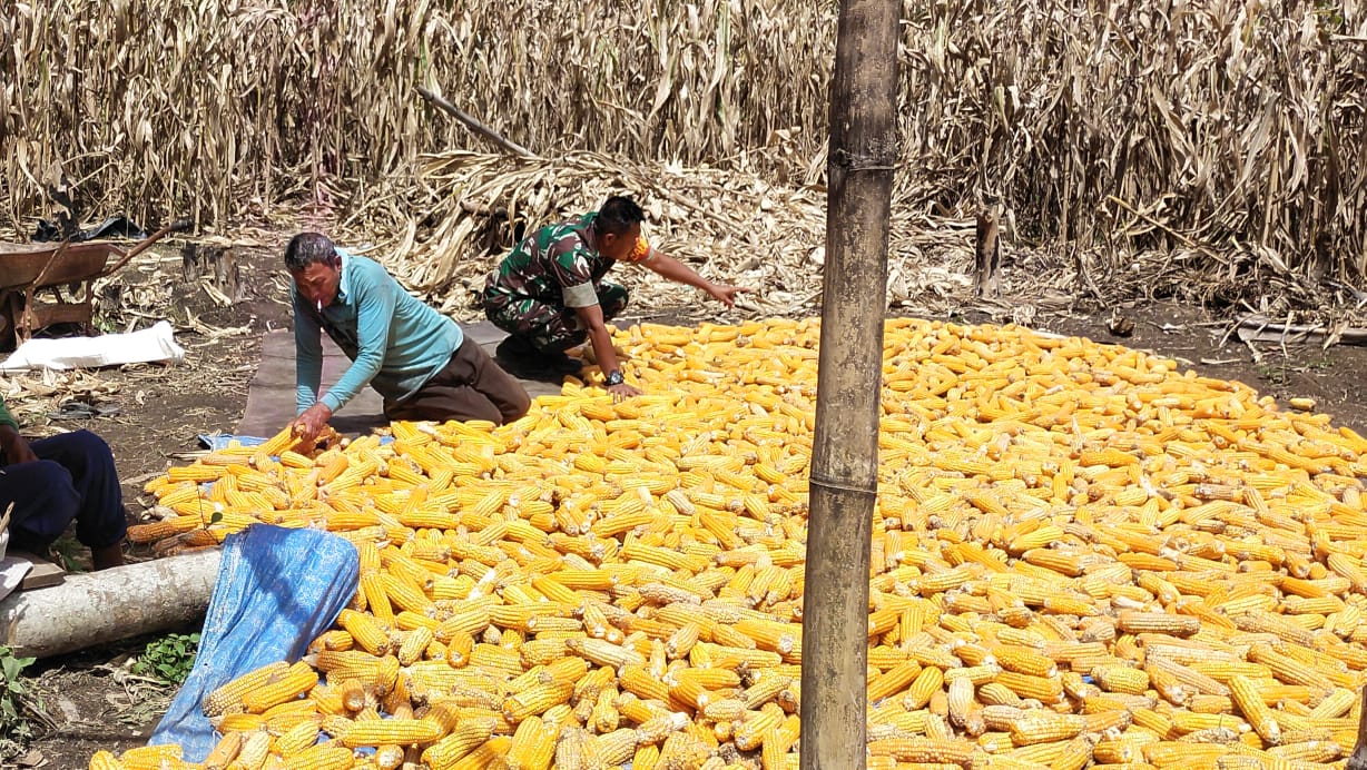 Babinsa Pasie Raya Dampingi Petani Jemur Jagung, Sukseskan Program Ketahanan Pangan
