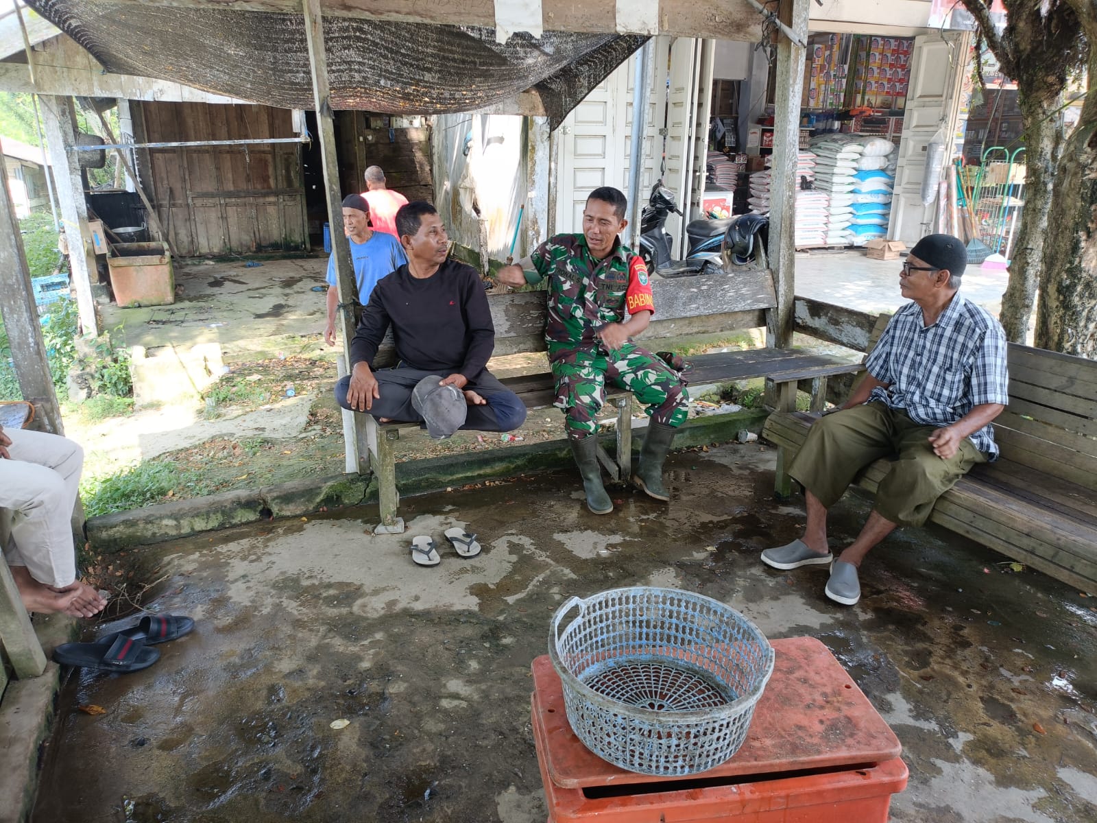 ACEH JAYA – Serda Ronal, Babinsa Pos Ramil Darul Hikmah, Kodim 0114/Aceh Jaya, hari ini melaksanakan kegiatan Komunikasi Sosial (Komsos) bersama masyarakat di Desa Patek, Kecamatan Darul Hikmah, Kabupaten Aceh Jaya. Diskusi utama dalam komsos kali ini berfokus pada dampak cuaca buruk yang belakangan ini melanda wilayah tersebut terhadap aktivitas nelayan dan ketersediaan harga ikan di pasar lokal, Senin (11/08).