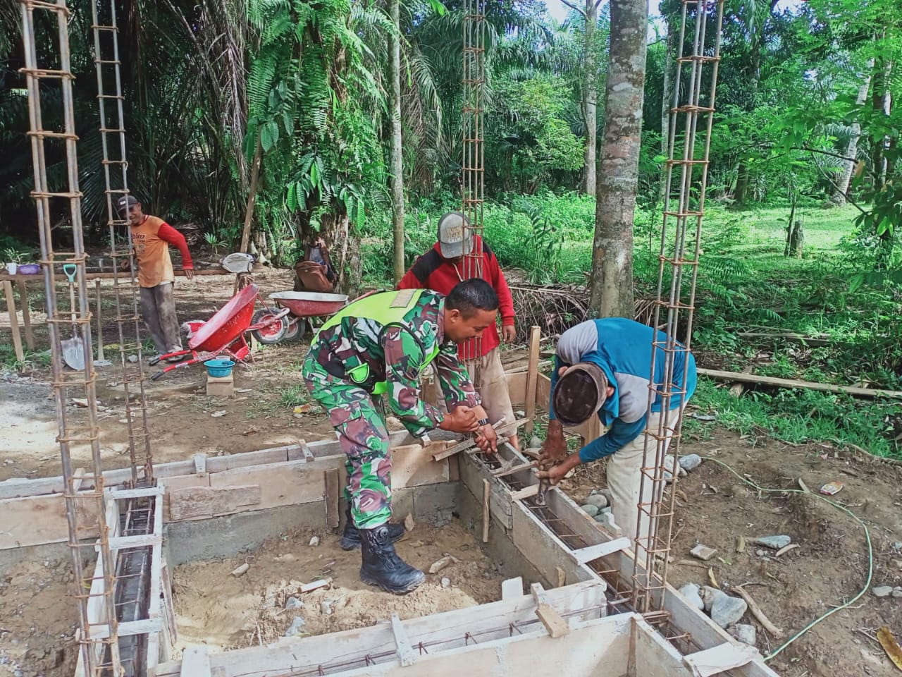 Aceh Barat – Babinsa Posramil 05/Pante Ceureumen Kodim 0105/Aceh Barat, Sertu Saefudin, terus menunjukkan komitmen dan kepeduliannya terhadap kesejahteraan masyarakat di wilayahnya dengan aktif membantu warga dalam membangun rumah di Desa Meunuang kinco kec Pante Ceureumen kab Aceh Barat, Minggu (14/9/2025).