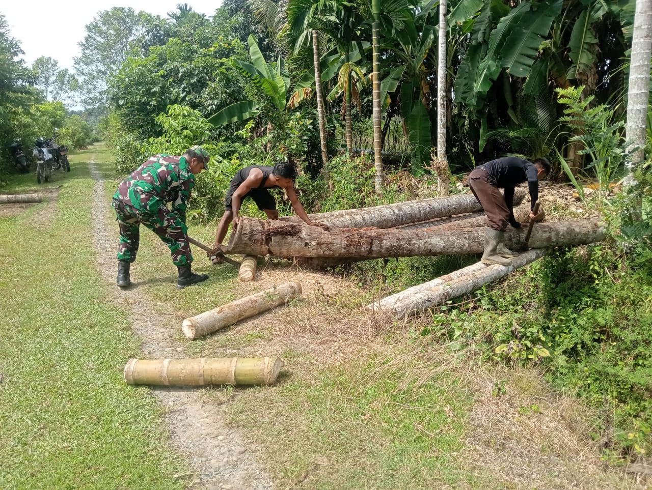 ACEH BARAT – Dalam rangka menjalankan tugas pembinaan teritorial di wilayah binaan, Koptu M Nazir, Babinsa Posramil 05/Pante Ceureumen Kodim 0105/Aceh Barat, melaksanakan kegiatan karya bakti membantu warga membangun jembatan dari batang pohon kelapa di Desa Menuang Kinco, Kecamatan Pante Ceureumen, pada Sabtu (02/08/2025).