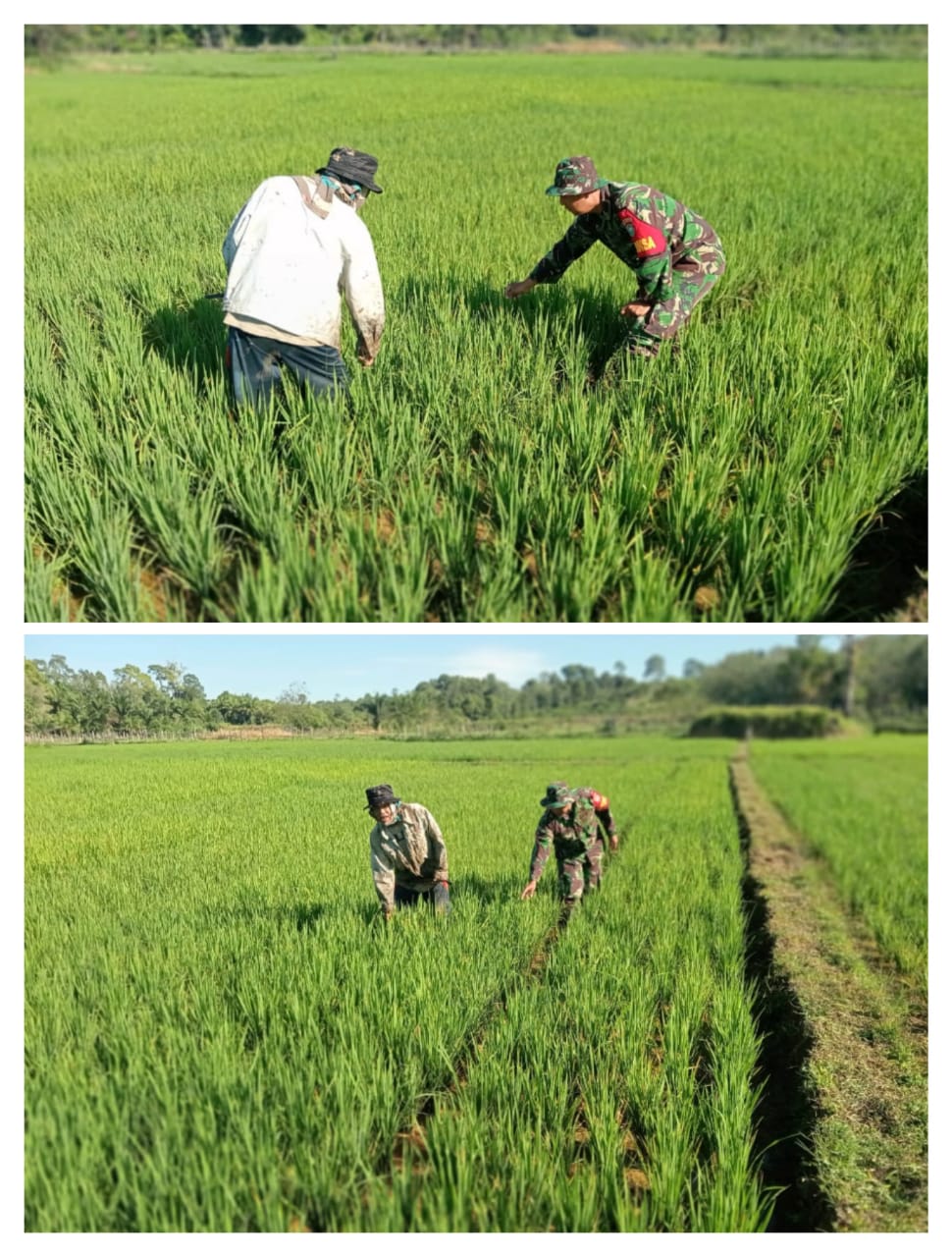 Dalam pendampingan tersebut, Babinsa bersama petani turun langsung ke area persawahan untuk melihat kondisi tanaman padi, mulai dari pertumbuhan, kondisi tanah, hingga potensi gangguan hama. Babinsa juga memberikan motivasi kepada petani agar tetap semangat dalam mengelola lahan pertanian guna meningkatkan hasil panen.