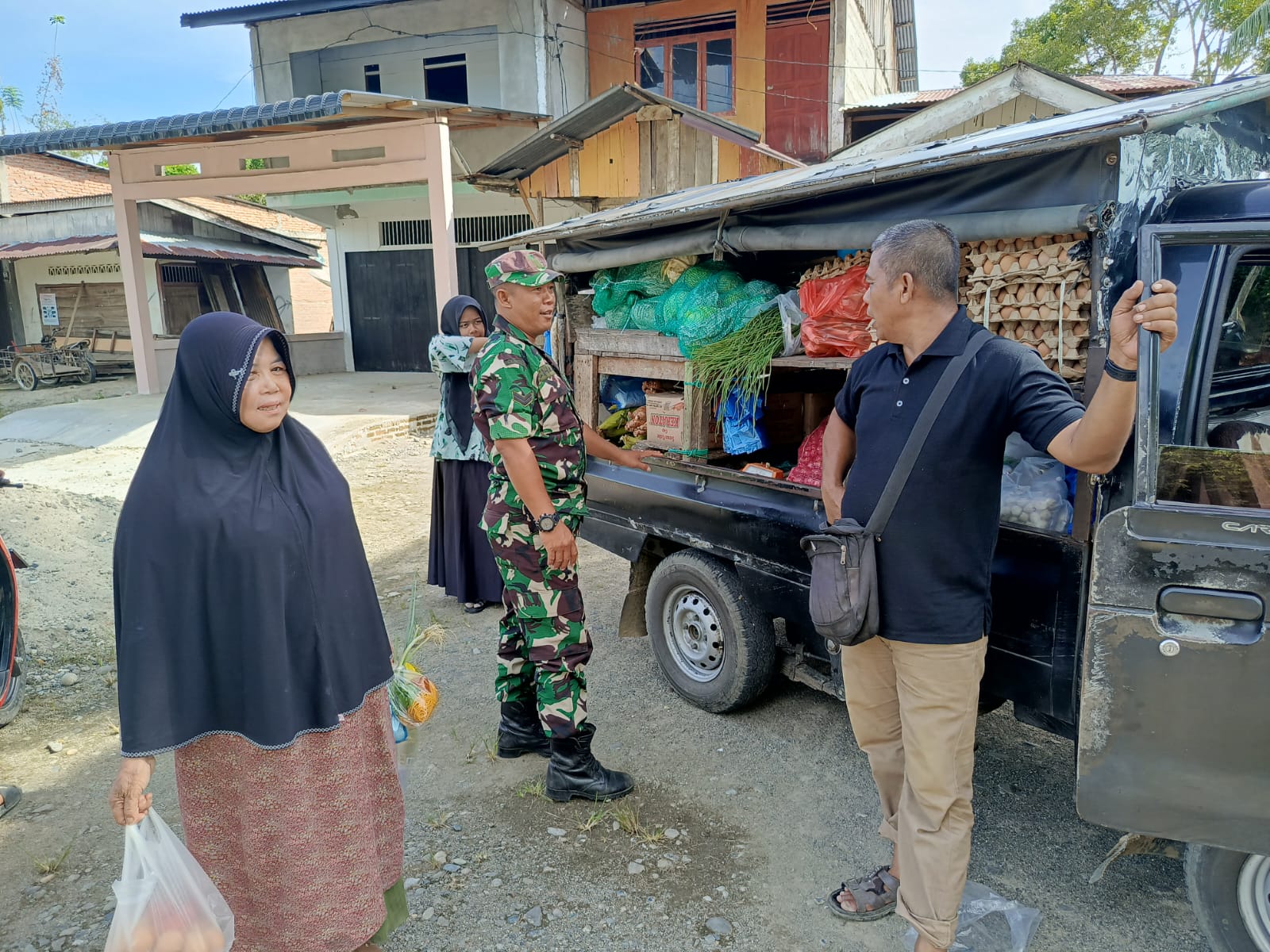 ACEH JAYA – Babinsa Posramil Pasie Raya Kodim 0114/Aceh Jaya, Sertu Syamsul, terus aktif melaksanakan komunikasi sosial (Komsos) sebagai bagian dari tugas pembinaan teritorialnya. Kali ini, Sertu Syamsul berinteraksi langsung dengan Muslim (47), seorang pedagang sayur keliling di Desa Tuwie Kareung, Kecamatan Pasie Raya, Kabupaten Aceh Jaya. Komsos ini secara khusus membahas mengenai stabilitas harga kebutuhan bahan pokok menjelang perayaan Hari Raya Idul Adha, Senin (02/06).
