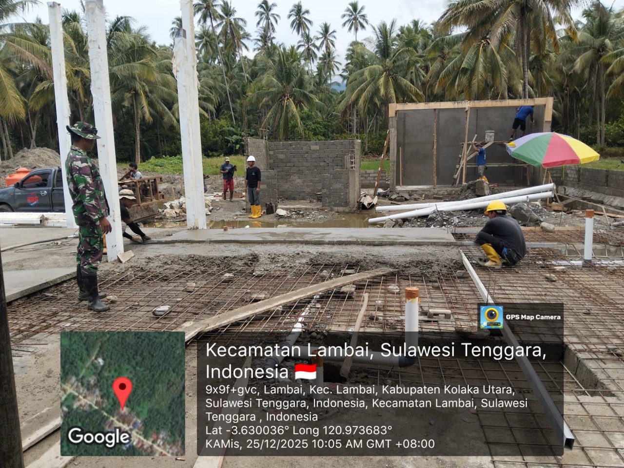 Kolaka Utara – Dalam upaya mendukung program pemerintah dalam meningkatkan gizi masyarakat, khususnya bagi anak-anak dan kelompok rentan, Babinsa dari Koramil 1412-08/Ranteangin, Serda Arkas, melaksanakan pemantauan pembangunan Dapur Makan Bergizi (MBG) di Desa Lambai, Kecamatan Lambai, Kabupaten Kolaka Utara pada Kamis, 25 Desember 2025. Kegiatan ini merupakan langkah strategis untuk memastikan bahwa proses pembangunan berjalan sesuai rencana dan dapat memberikan manfaat optimal bagi masyarakat.
