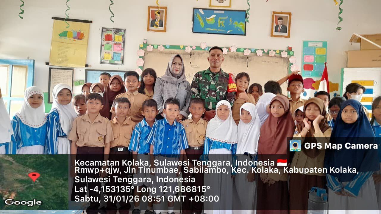 Kolaka – Pada Sabtu, 31 Januari 2026, sekitar pukul 08.30 WITA, Serka Hasanuddin, Babinsa dari Kelurahan Sabilambo, Kecamatan Kolaka, menggelar kegiatan edukasi di Sekolah Dasar Negeri 3 Sabilambo. Dalam kesempatan ini, ia bertindak sebagai pengajar untuk memberikan pemahaman mengenai Wawasan Kebangsaan kepada para siswa.