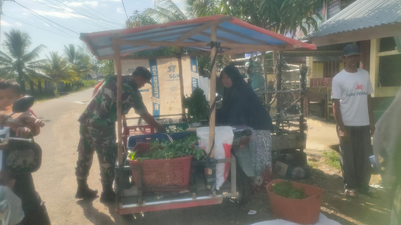 ACEH JAYA – Guna memastikan ketersediaan pasokan pangan dan stabilitas harga kebutuhan pokok masyarakat, Babinsa Koramil 02/Sampoiniet Kodim 0114/Aceh Jaya, Sertu Sigit Hariyanto, melaksanakan kegiatan komunikasi sosial (komsos) dengan para pedagang sayuran. Kegiatan ini berlangsung di pasar desa Lhok Kruet, Kecamatan Sampoiniet, Kabupaten Aceh Jaya.