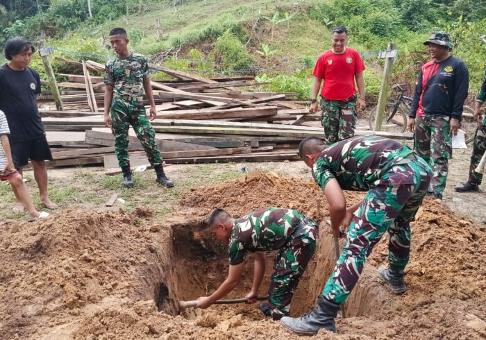 ACEH JAYA – Sebagai wujud kepedulian dan upaya mempererat tali silaturahmi dengan warga binaan, Bintara Pembina Desa (Babinsa) Koramil 02/Sampoiniet Kodim 0114/Aceh Jaya, Praka Toni Hartanto, melaksanakan kegiatan karya bakti membantu pembangunan rumah salah seorang warga. Kegiatan yang penuh kebersamaan ini berlokasi di Desa Kuala Ligan, Kecamatan Sampoiniet, Kabupaten Aceh Jaya, tepatnya di kediaman Sdr. Saiful (42 tahun), Senin (04/08).