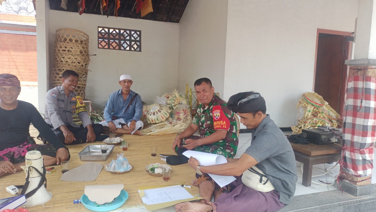 Klungkung,- Babinsa Takmung Koramil 1610-02/Banjarangkan Serka Yulianta bersama Bhabinkamtibmas mendampingi Perbekel dan staf desa melaksanakan silahturahmi di Pura Dalem Purwa, Desa Adat Sidayu Tojan, Sabtu ( 16/11/24 ).